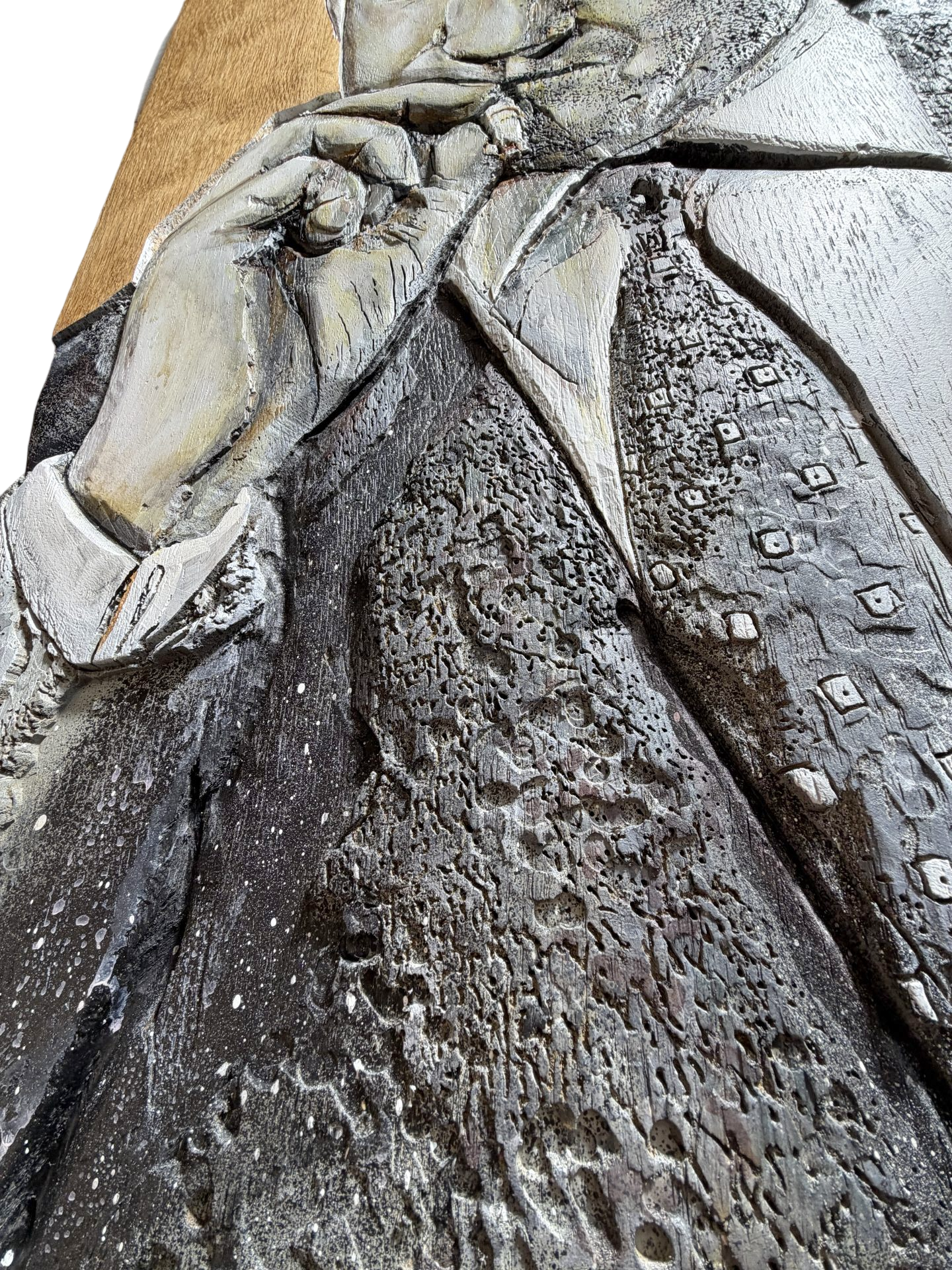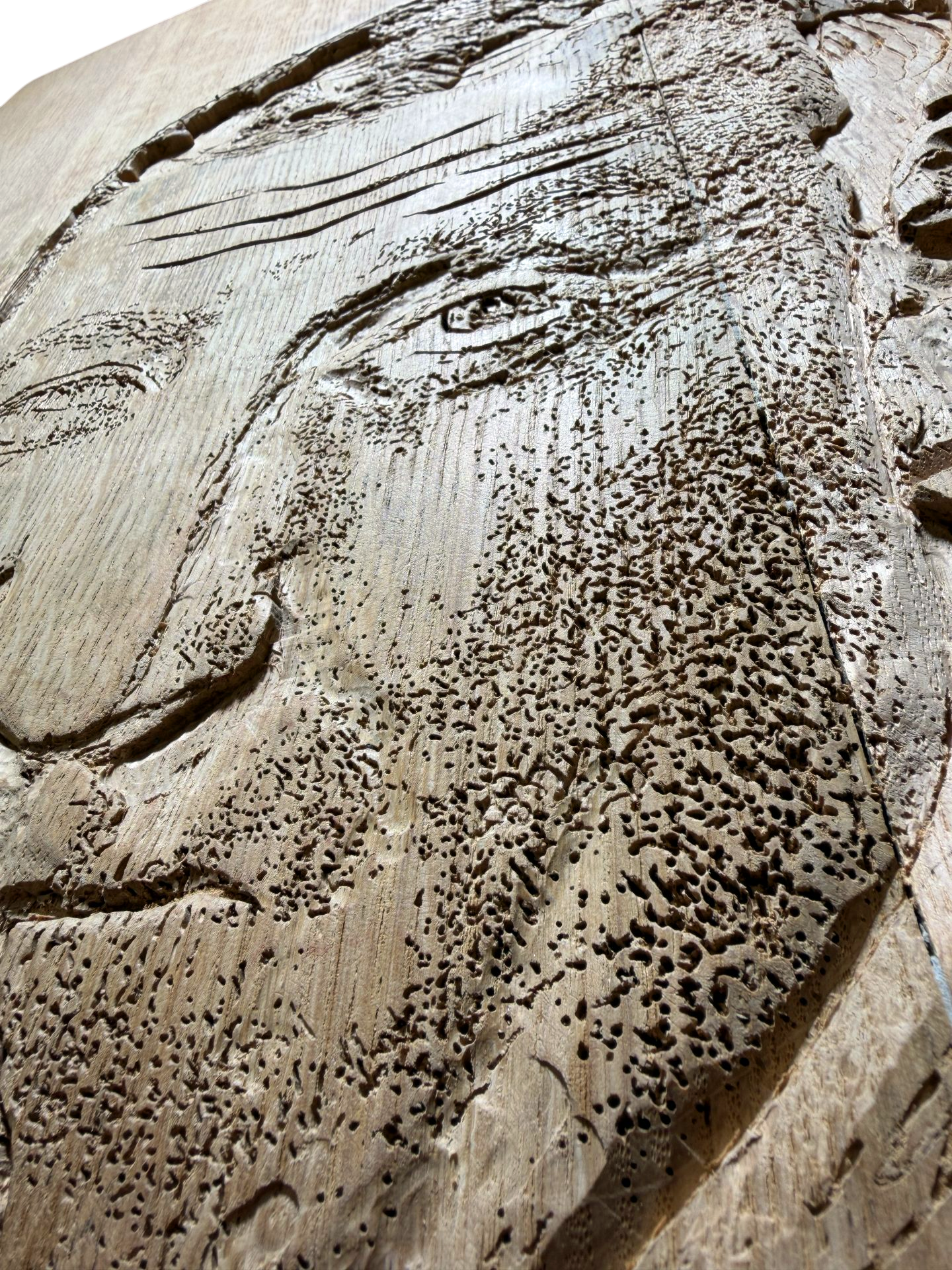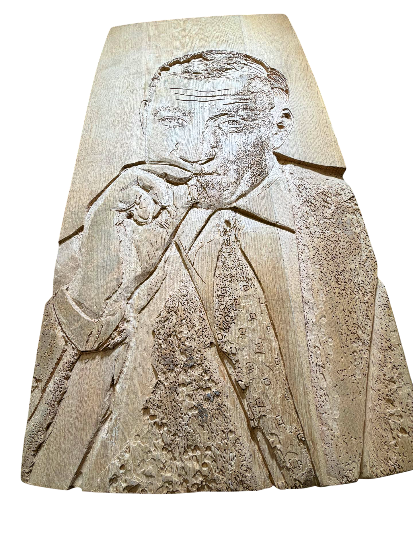 Ce bas-relief en chêne est la pièce maîtresse idéale pour les amateurs de films cultes, d’artisanat d’art et d’objets à forte personnalité.