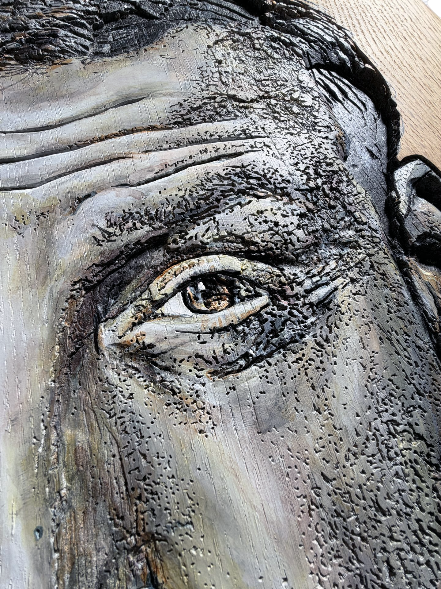 Lino Ventura, le tonton flingueur : Gravure et peinture sur bois