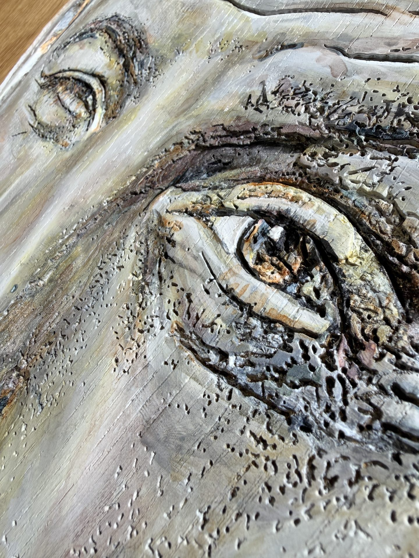 Keith Richards not painted in black : Gravure et peinture sur bois