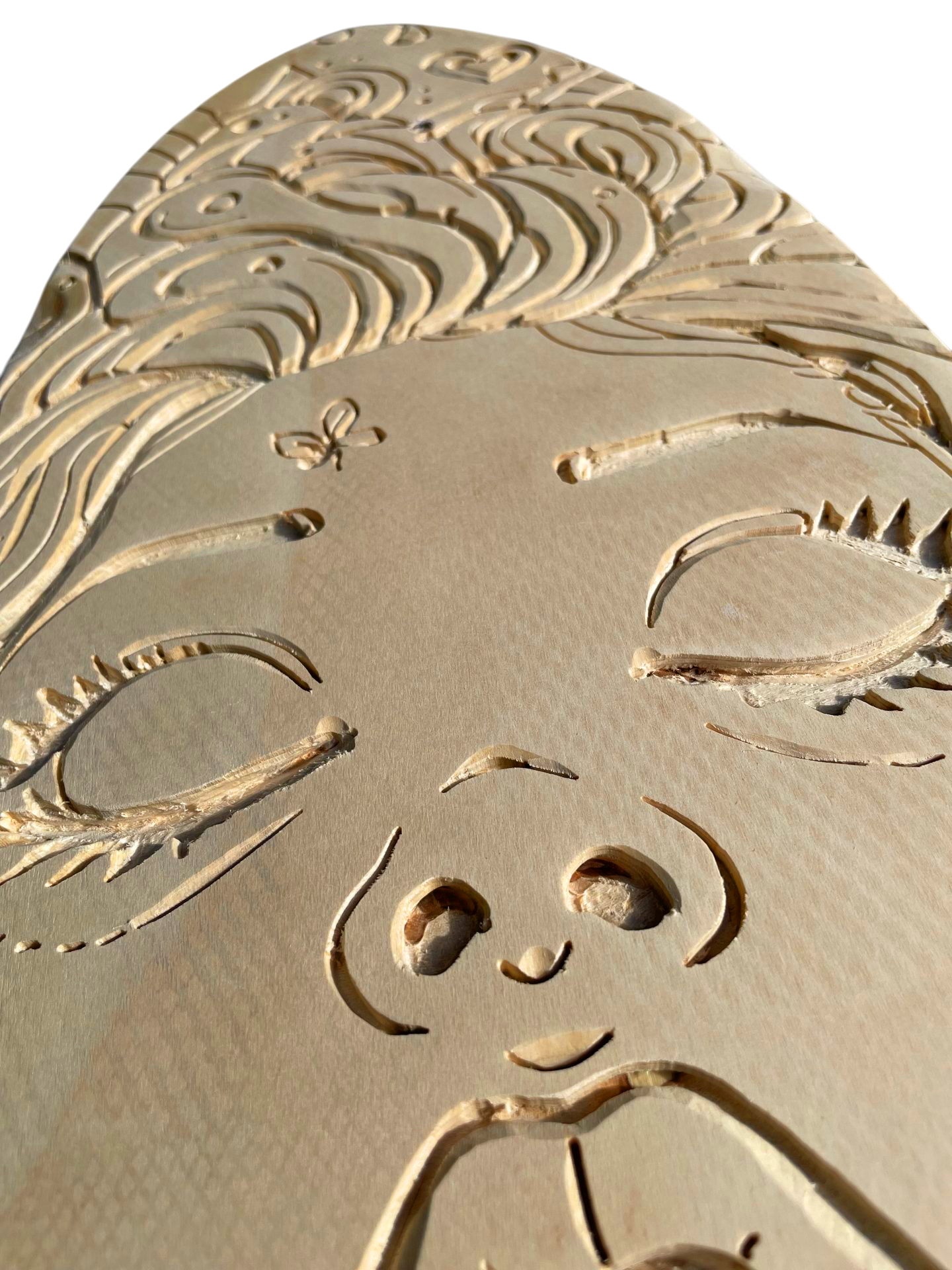 Skate Tiki : Gravure et peinture sur bois