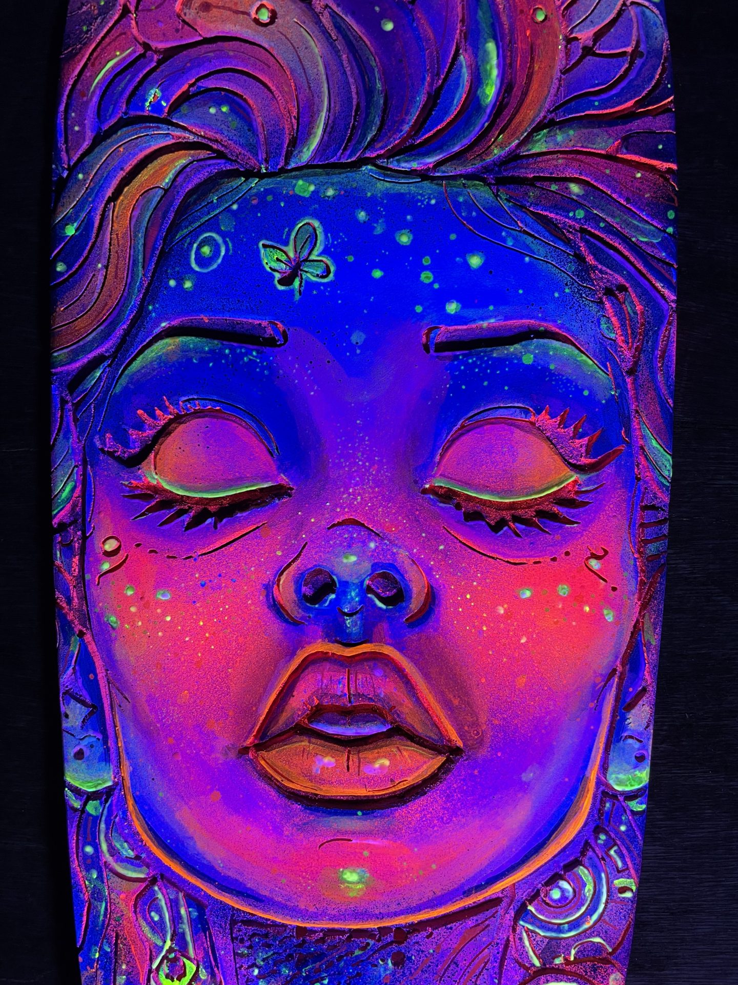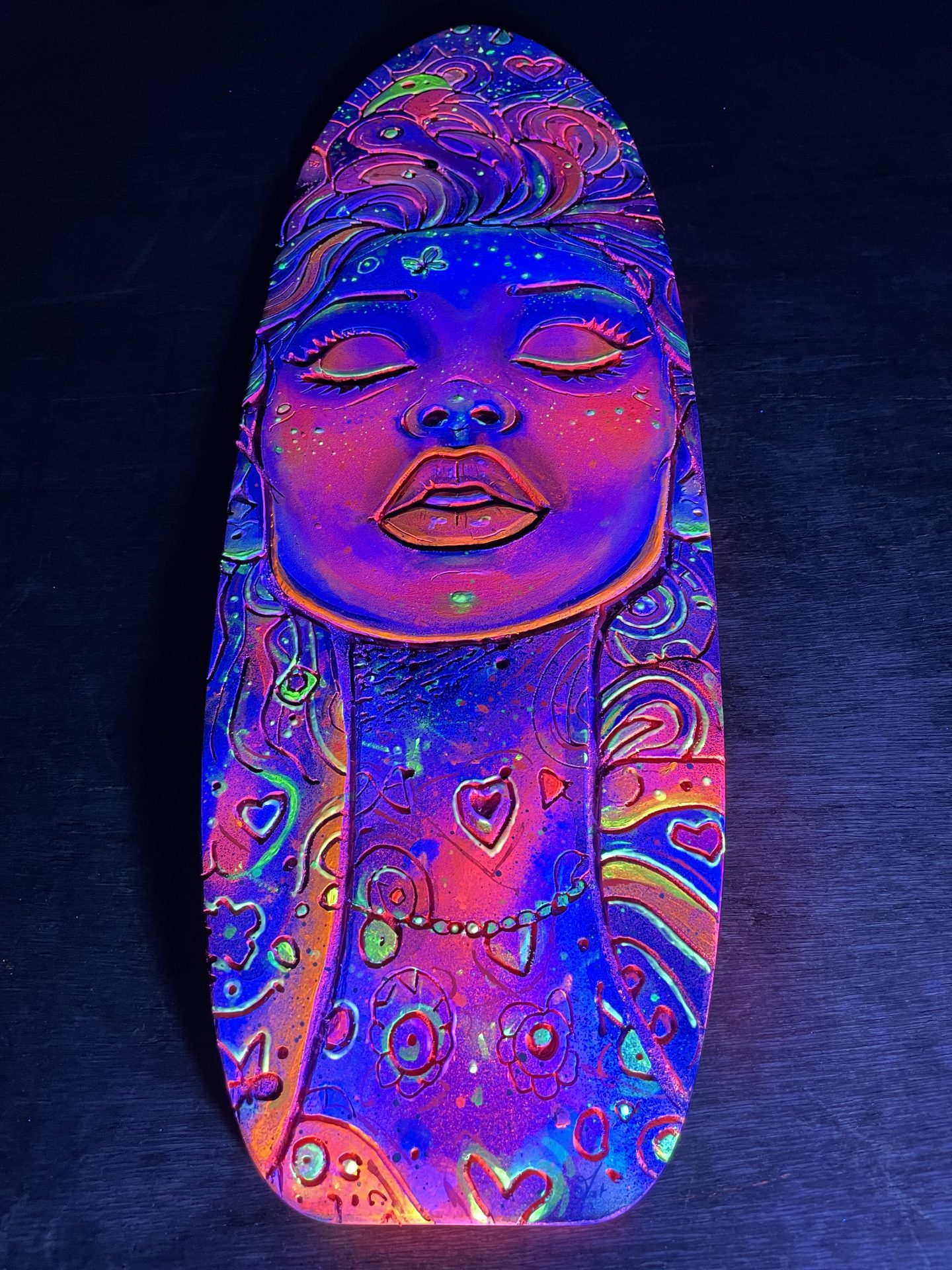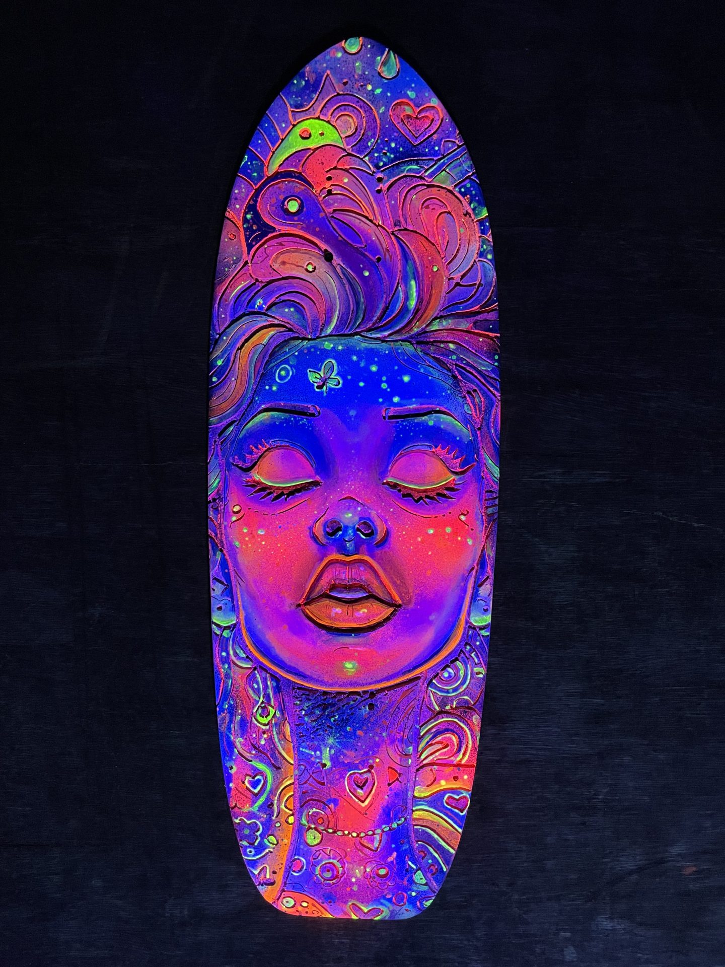🛹 Cosmic woman – Skateboard gravé & peint à la main 🔮✨