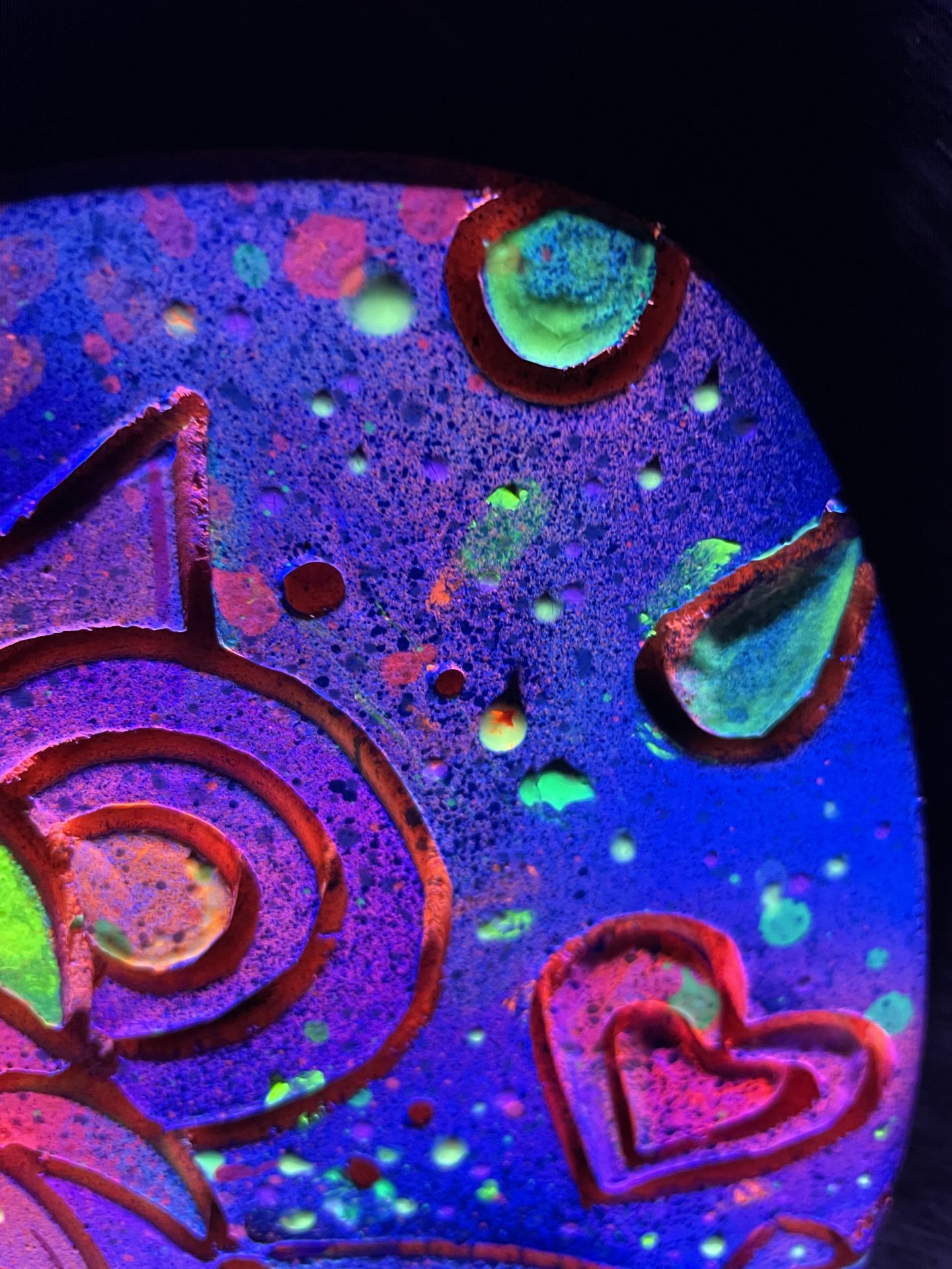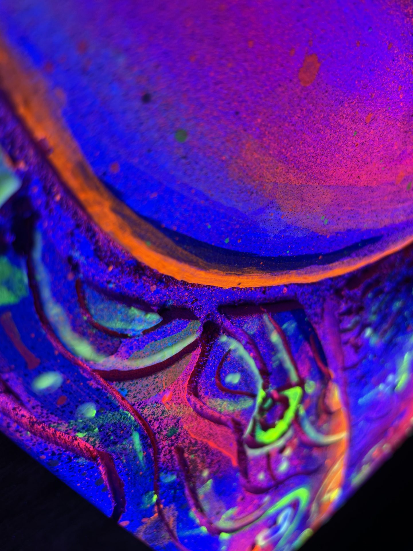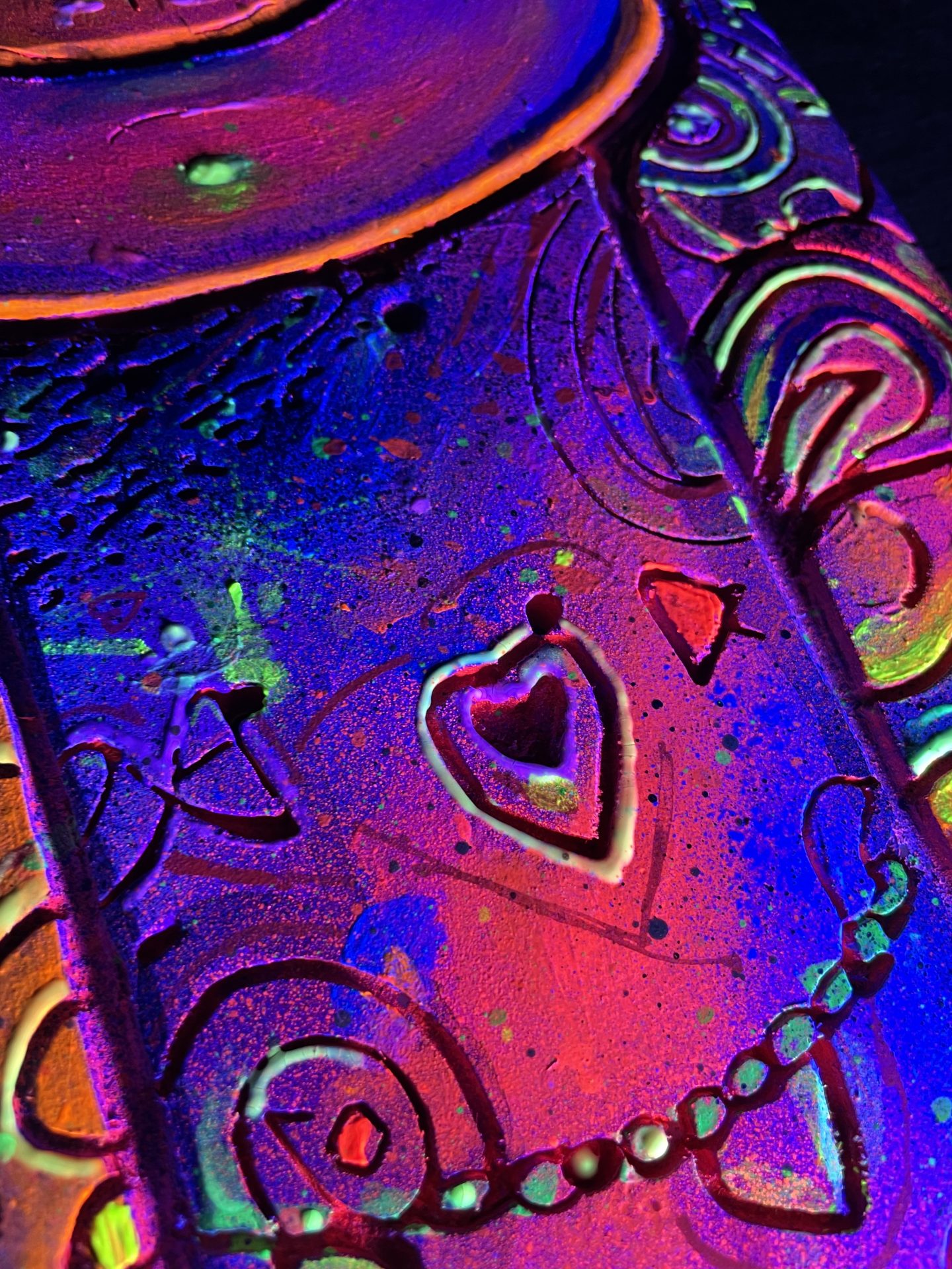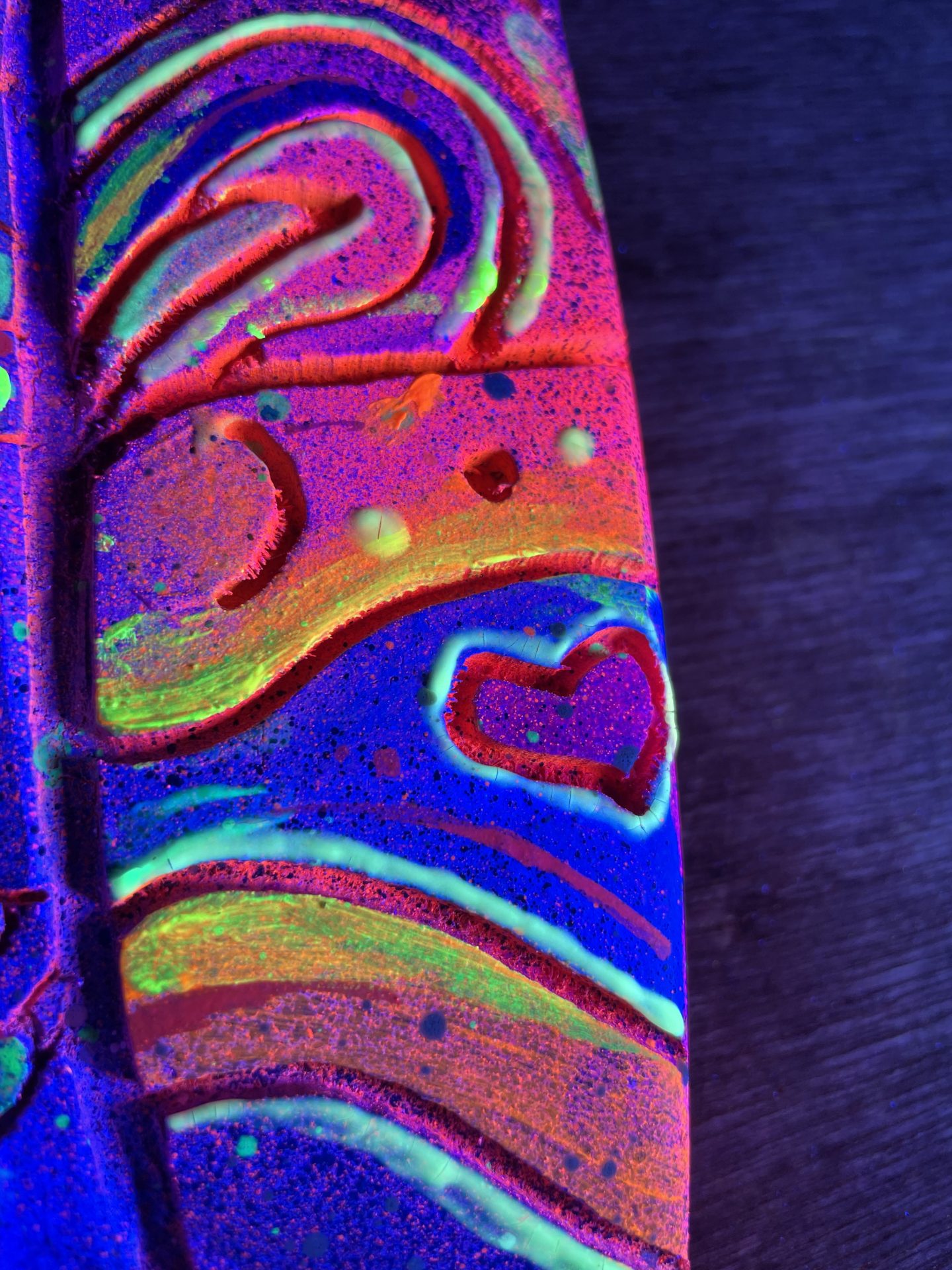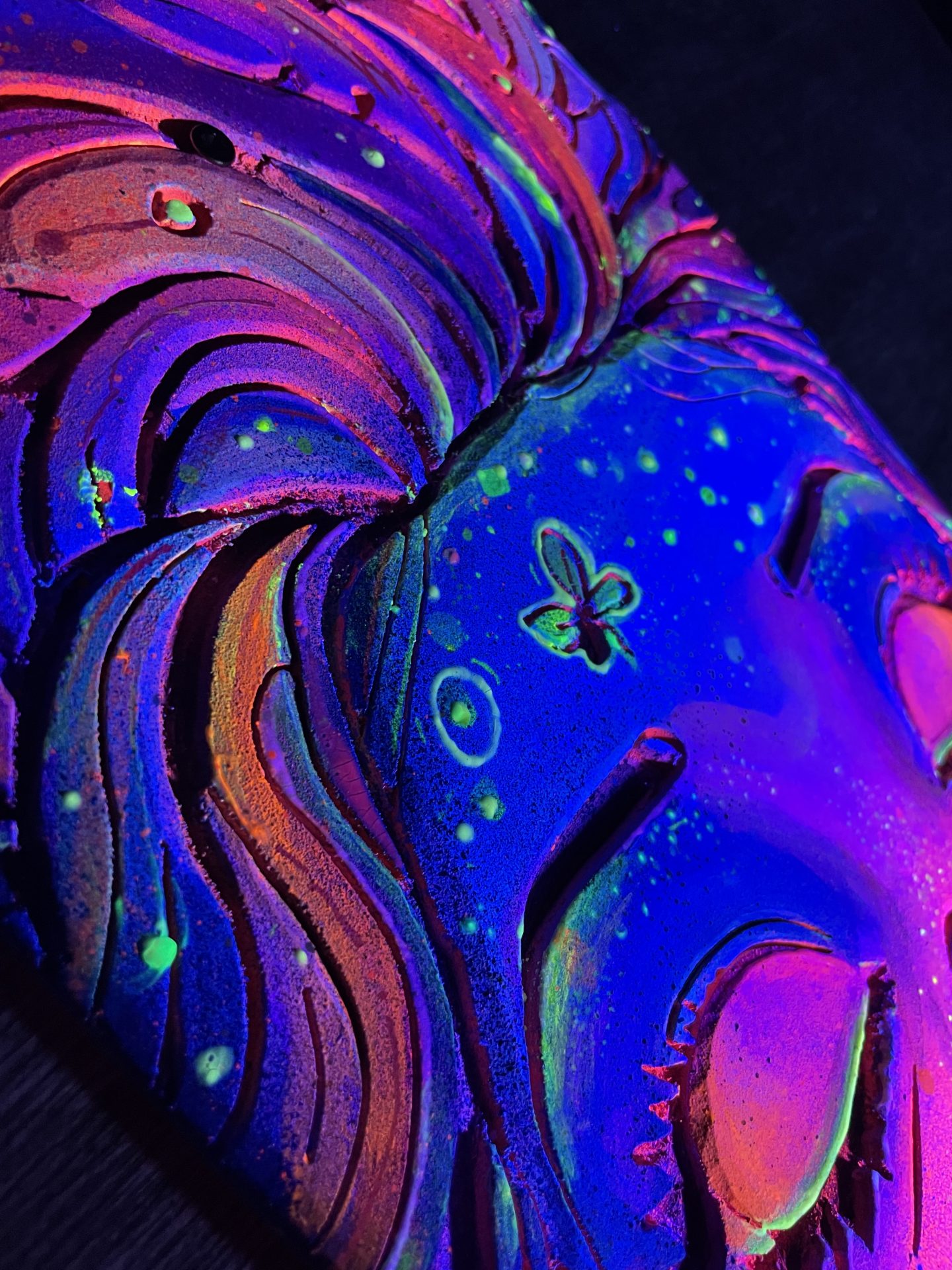 Une pièce de décoration unique qui brille dans le noir, alliant art urbain et sculpture sur bois.